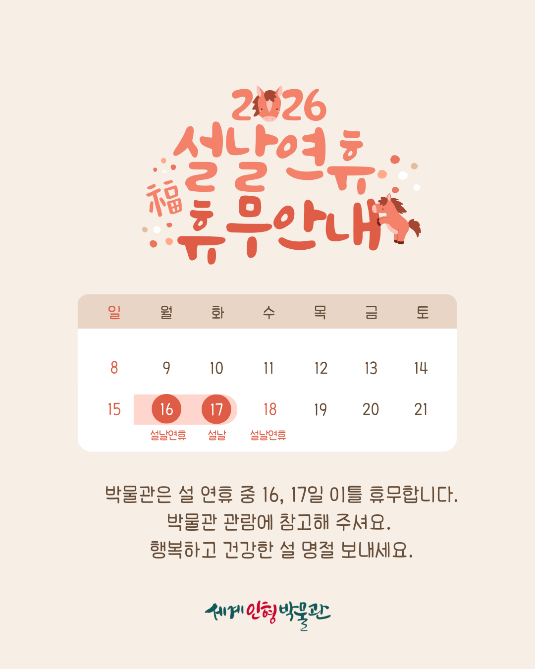 ¼¼°èÀÎÇü¹Ú¹°°üÀº ¼³ ¿¬ÈÞ Áß ¼³ Àü³¯ÀÎ 16Àϰú ¼³ ´çÀÏÀÎ 17ÀÏ ÈÞ¹«ÇÕ´Ï´Ù.¹Ú¹°°ü À̿뿡 Âü°íÇØ Áֽñ⠹ٶø´Ï´Ù.»õÇØ º¹ ¸¹ÀÌ ¹ÞÀ¸¼¼¿ä!#¼¼°èÀÎÇü¹Ú¹°°ü#¼³¿¬ÈÞ#ÈÞ¹«¾È³»#»õÇØº¹¸¹À̹ÞÀ¸¼¼¿ä